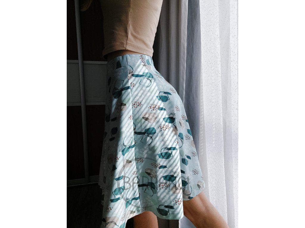 Díky pružnému pasu se sukně pohodlně přizpůsobí postavě.