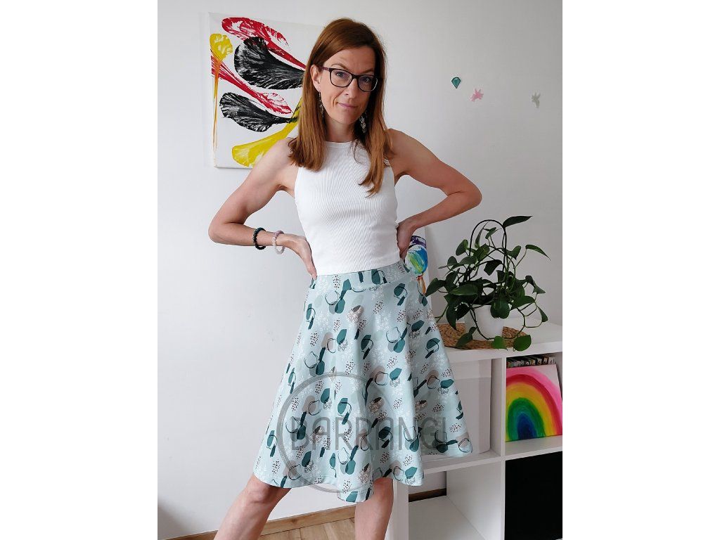 Půlkolová sukně - Klid v zeleni LIMITOVANÁ EDICE